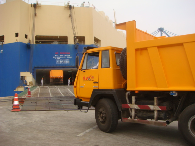 2008年9月我司租用MV.GRAND RUBY(RORO),从上海港海通码头发往阿尔及尔一批工程机械成功起运,货主对我司专业的滚装船服务大加赞赏。